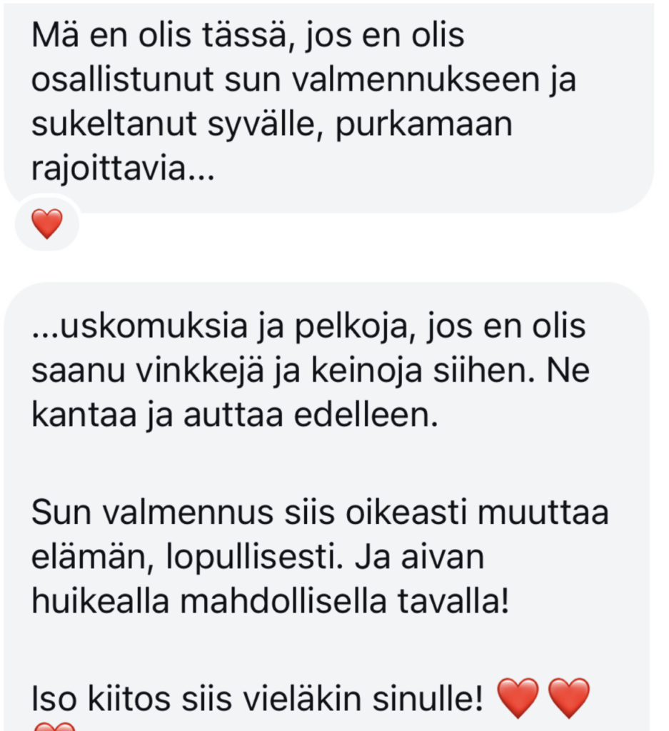 Tässä valmennuksessa, näillä mindset-shiftauksilla ja työkaluilla ja korkeimman tason välineillä tuo kaikki loppuu